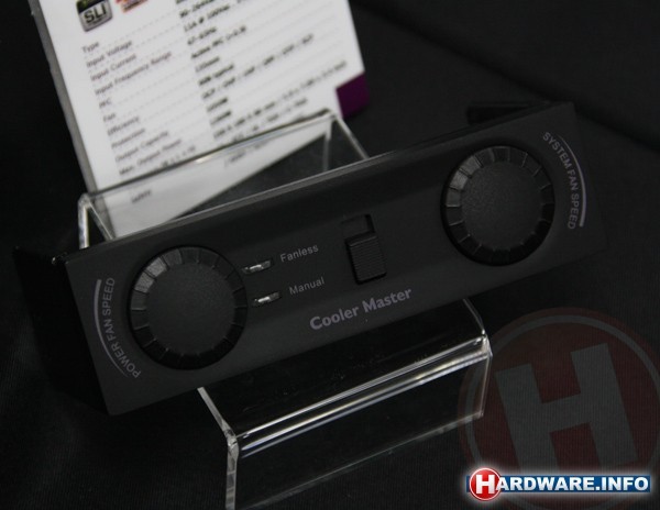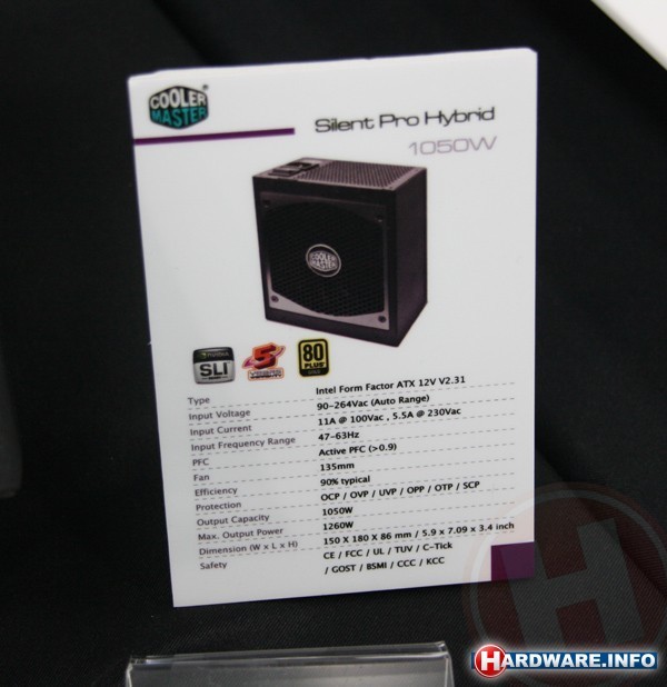 Cooler Master heeft een 80 Plus Gold voedingenreeks tentoongesteld. Deze Silent Pro Hybrid komen als 850 watt, 1050 watt en 1200 watt variant op de markt en zijn voorzien van een paneel voor aan de voorzijde van de behuizing. Middels dit 5,25-inch paneel kan men kiezen om de draaisnelheid van de ventilator automatisch te laten regelen of handmatig in te stellen. Met twee draaiknoppen is vervolgens de snelheid van de fan in de voeding en de systeemfan te regelen. De automatische stand maakt de voeding semi-passief aangezien de ventilator niet gaat draaien tot een bepaalde belasting bereikt is.