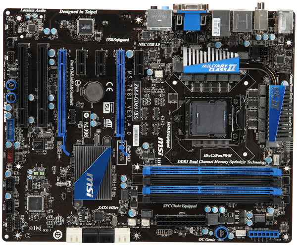 Zoals de naam doet vermoeden hebben we te maken de Intel Z68 (B3) express chipset, hierdoor is het moederbord geschikt om uitgerust te worden met een Intel LGA 1155 Core i3, i5 of i7 processor. Er is ruimte voor vier geheugenmodules die gezamenlijk een totale capaciteit van 32 GB kunnen hebben. Daarnaast zijn twee PCI-Express 2.0 x16 sloten, drie PCI-Express x1 en twee PCI-sloten aanwezig.
