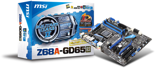 Het Z68A-GD65 (B3) bord is voorzien van de OC Genie II overkloktechnologie, hiermee kunnen de frequenties van zowel de CPU als de geïntegreerde GPU licht verhoogt worden. Verder heeft men gebruik gemaakt van hoogwaardige componenten getuige het Military Class II Components logo.
