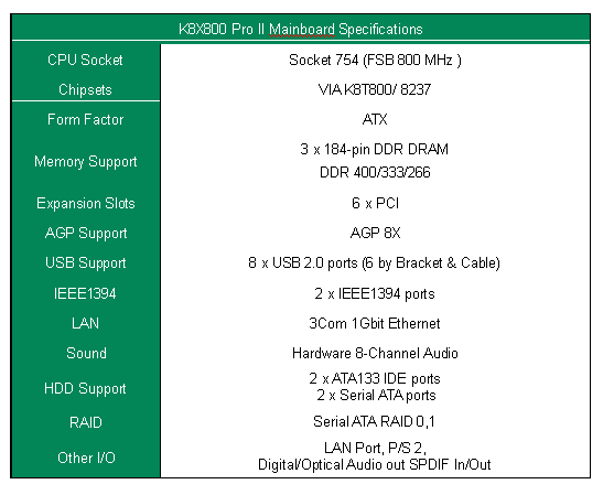 Albatron brengt de K8X800 Pro II op de markt, dit moederbord is geschikt voor de nieuwe AMD Athlon 64 en is gebaseerd op de VIA K8T800 north bridge en de VIA 8237 south bridge.