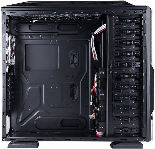 Het interieur biedt plaats aan een volledig ATX formaat moederbord, een extra lange voeding, zes 3,5'' harde schijven en maximaal vijf 5,25'' apparaten. Zoals op onderstaande foto's te zien is, heeft Spire gekozen voor een modulair systeem waarbij er eventueel een rekje voor harde schijven kan worden toegevoegd of verwijderd, naargelang de behoefte aan 3,5'' posities. De harde schijven en optische drives kunnen zonder gereedschap worden vastgezet. Het moederbordtray bevat diverse gaten voor kabelmanagement en een grote uitsparing die het installeren van een backplate voor een CPU-koeler makkelijk maakt. Gaten voor waterkoeling zijn ook aan de featureset toegevoegd.