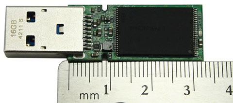 Het PCB van de flashdrive is slechts 33 millimeter lang.
