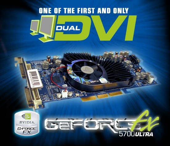 XFX heeft de GEFORCE FX 5700 Ultra 128 MB DDRII DUAL DVI & VIVO gepresenteerd. Deze kaart is voorzien van 128 MB geheugen en beschikt over twee Dual DVI-aansluitingen en is daarmee uiterst geschikt om gecombineerd te worden met twee goede TFT-schermen.