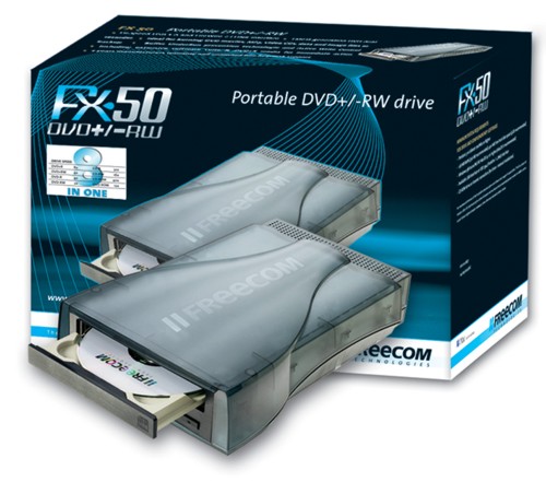 Freecom heeft de snelheid van de nieuwe FX-50 en FX-10 Dual DVD-branders verhoogt tot 8x. Met het aanbod van deze externe, multi-formaat DVD-branders en de interne DVD-schrijver levert Freecom de ultieme oplossing voor alle applicaties in één enkele behuizing: 8x DVD+/-RW, CD-brander en DVD/CD-ROM-drive. De Dual DVD-drives reecom kopiëren zowel DVD’s (“+“ en “- “ media) als CD’s en bieden de mogelijkheid om back-ups op een DVD te maken. Freecom levert bovendien een uitgebreid softwarepakket voor het professioneel bewerken van video’s, foto’s en muziekbestanden. De ingebouwde buffer underrun-preventie zorgt ervoor dat zowel het schrijven als het herschrijven van DVD’s of CD’s absoluut en altijd betrouwbaar is.