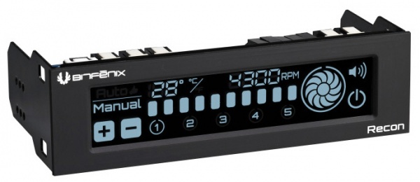 Bitfenix introduceert twee nieuwe fancontrollers met de Hydra Pro en Recon. De Hydra Pro is een vrij eenvoudige fancontroller met vijf schuifknopen op de voorkant en past in een 5,25-inch bay. Elk kanaal heeft een vermogen van 30 watt waarmee ook meerdere fans op één kanaal kunnen worden aangesloten. Ook heeft de fancontroller een speciale Bitfenix Spectre ledconnector waarmee de ledverlichting van geschikte fans ook kan worden uitgeschakeld met de druk op een knop.