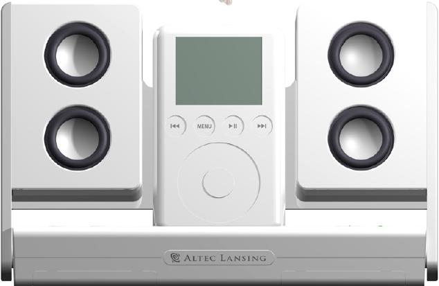 Deze nieuwe draagbare speakerset is speciaal ontworpen voor de iPod (2). Volledig ingeklapt meet dit systeem slechts 20,4 x 13,8 x 3 cm en weegt een magere 450 gram. Met een eigen technologie, genaamd MaxxBass, wordt er een dieper geluid gecreëerd in de lage tonen. Altec Lansing verzekert 24 uur muziek op de (niet meegeleverde) AA-batterijen. Het volume kan geregeld worden via de knoppen op het toestel.