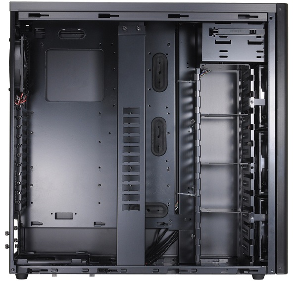 Bij de A75X doet de voorkant dienst als groot ventilatierooster, waardoor maximaal drie 140 mm ventilatoren koele lucht kunnen aanzuigen. Bij de A76X voegt Lian Li een deurtje toe, dat zorgt voor een strakke afwerking en extra geluiddemping. Bij deze kast wordt de frisse lucht via de flanken aangezogen, want ook hier kunnen drie 140 mm ventiltoren voor de harde schijven geplaatst worden. Aan de achterkant van beide kasten vinden we één 120 mm ventilator en bovenin kunnen naar wens ook nog twee 120 mm exemplaren toegevoegd worden. Er zijn elf PCI-uitbreidingssloten, genoeg voor bijna alle denkbare configuraties van maximaal vier videokaarten (die maximaal 36 cm lang mogen zijn). De processorkoeler kan maximaal 17 cm hoog zijn en is door een uitsparing in het moederbordtray makkelijk te installeren.