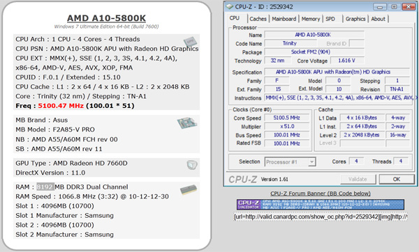 Bij onze eigen overklokpoging wisten we met alle rekenkernen ingeschakeld een snelheid van 4692 MHz te halen, hierbij had de processor en het geheugen een voltage van respectievelijk 1,55 V en 1,7 V. We zijn benieuwd tot welke snelheden de toekomstige Trinity processors kunnen komen en of de Hardware.Info bezoekers weten te halen.