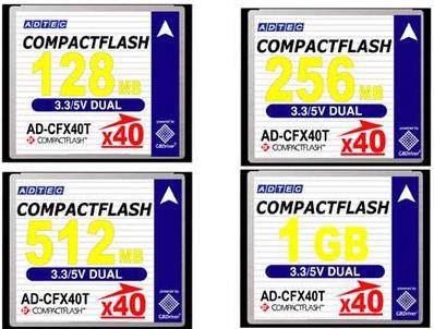 In een ander persbericht maakt Adtec bekend dat er ook CompactFlash kaarten op komst zijn. Deze nieuwe flashcards werken op 40x speed en zijn beschikbaar in een 128MB, 256MB, 512MB en 1GB versie. Adtec verwacht de kaarten in de eerste weken van mei te leveren.