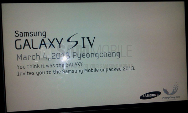 Verder is een foto verschenen voor een uitnodiging voor een evenement in Pyeongchang te Korea. Tijdens deze presentatie op 4 maart zal de Samsung Galaxy S IV uitgepakt worden en officieel getoond worden aan het publiek.