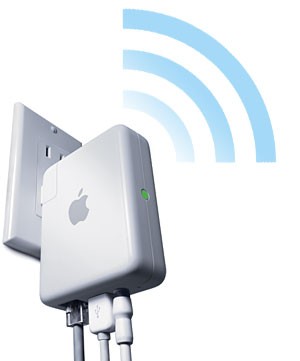 Apple heeft vandaag de 'Airport Express' aangekondigd, een compact apparaatje dat fungeert als draadloze router, als printerserver en als audiogateway. De Airport Express kan direct in het stopcontact geprikt worden en maakt gebruik van de 802.11g (54 Mbit) WLAN-technologie.