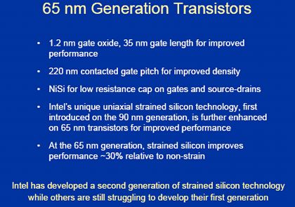 Intel is momenteel bezig haar productieprocessen te verplaatsen naar 90nm technologie, maar al bezig met testen voor de volgende stap, naar 65nm. Hiervoor gebruikt Intel altijd SRAM's die onder speciale testomstandigheden worden geproduceerd.