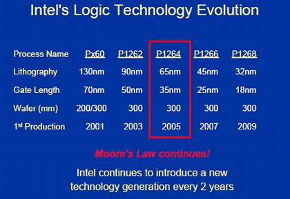 De nieuwe technologie houdt ook de wet van Moore (Moore's Law) wat langer in stand. in 1965 stelde Gordon Moore, medeoprichter van Intel, dat de hoeveelheid transistoren op een chip elke 12 maanden zou verdubbelen. Later werd dit aangepast naar 18 a 24 maanden. Door problemen met lekstromen en warmteontwikkeling zijn ontwikkelingen zoals de 65nm technologie nodig om de wet van Moore in stand te houden.