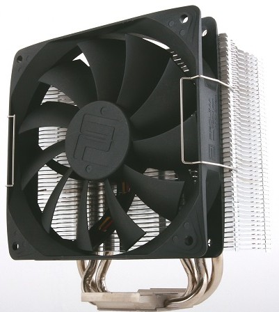 De Basic 45 koeler is nieuw binnen deze reeks. Hij meet 100x55x125 mm en weegt 288 gram. Er lopen twee koperen heatpipes met een dikte van 6 mm door de aluminium heatsink. Een 92 mm PWM-gestuurde ventilator, variërend op een draaisnelheid van 1000 tot 2000 RPM, moet het geheel op acceptabele temperaturen houden.