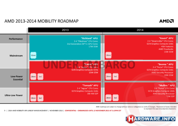 Tijdens haar APU13 Developer Conference heeft AMD vandaag de Beema en Mullins processors voor tablets en instap-laptops aangekondigd. Deze nieuwe chips maken gebruik van nieuwe CPU-cores en hebben een geïntegreerde security processor, gebaseerd op ARM-technologie.