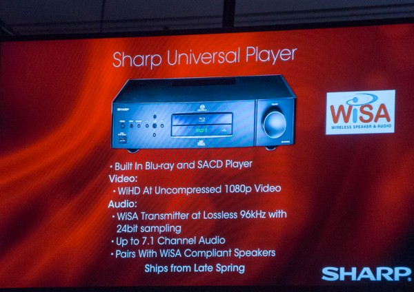 Sharp heeft op de CES ook de SH-WH1000U gepresenteerd. Een speler met een prijskaartje van 4000 USD. De speler is geschikt voor Blu-ray, DVD, CD’s en SACD’s. Een bijzonderheid is dat hij geschikt is voor een draadloze koppeling via de WISA (Wireless Speaker and Audio) met speakers. Deze technologie laat de verzending van ongecomprimeerde audio en video toe.