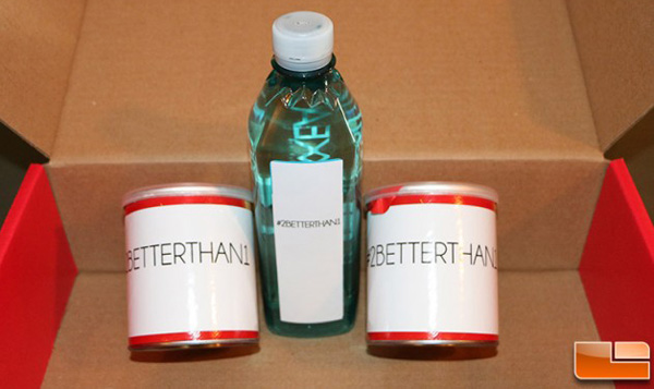 Het promotie-offensief van AMD rondom de nieuwe dual-GPU videokaart weet van geen ophouden. Zo heeft Legit Reviews een pakket gekregen met daarop een sticker die FPS Delivery ‘Now the World’s Fastest’ laat zien. In de doos zaten twee blikjes met Pringles en een flesje Waiakea Hawaiian Volvanic water die de opdruk #2BetterThan1 hadden. Het geheel laat indirect weten dat de Vesuvius videokaart twee chips zal hebben en een koeling door middel van water. Verder was er een brief waarin verwezen werd naar een evenement wat plaats zou vinden op 25 of 26 maart. Wordt vervolgd…