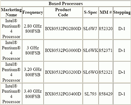 Als we Digit Life mogen geloven stopt Intel met haar 2,8GHz, 3,0GHz, 3,2GHz en 3,4GHz Pentium 4 processoren. op basis van de Northwood core. Deze processoren hebben allen een 800MHz Frontside Bus en zijn vervaardigd volgens het 0,13µm procédé. De laatste trayleveringen zullen in mei 2006 plaatsvinden. De boxed versie van de Northwood zal ten laatste op 17 juni 2005 geleverd worden. Hieronder zijn de modellen te vinden die uit de markt gaan.