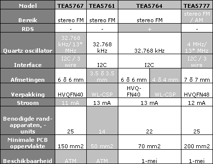 De TEA5761, de kleinste chip, is gemaakt met de WL-CSP technologie (Wafer-Level Chip Scale Packaging) en is een wafer, gemaakt uit silicium kristallen. Om de betreffende chip kleiner te maken, werd de chip naar de tekentafel teruggestuurd met als resultaat efficiëntere in-en outputconnecties en een oppervlakte die drie keer verkleind is.