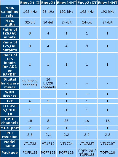 Via haar website heeft VIA interessante informatie over de binnenkort aangekondigde Vinyl Audio PCI-serie vrijgegeven. Zoals je misschien weet zijn de Envy24 en Envy24xx twee veelgebruikte audiochips in multimedia apparaten, zo bijvoorbeeld op het moederbord en in PCMCIA-kaarten.