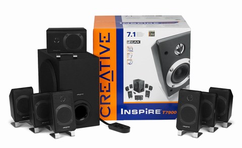 De Creative Inspire T7900-luidsprekerset is, zoals de naam al aangeeft, een 7.1-speakerset. In combinatie met Sound Blaster 7.1-geluidskaarten ondersteunen ze de meest recente en geavanceerde standaarden voor surroundaudio, zo laat Creative ons weten. Ook hier zijn de voorste satellietluidsprekers (8W RMS per kanaal) voorzien van dual-drivertechnologie. De centrale luidspreker (20W RMS) vooraan heeft extra versterking voor een verbeterde weergave van dialogen en effecten. Ook deze set heeft veelzijdige aansluitmogelijkheden via de subwoofer en de bedrade afstandsbediening maken combinatie met tal van geluidsbronnen mogelijk. Verder ondersteunt de CMSS-upmixtechnologie van Creative 7.1-uitvoer bij het gebruik met 5.1- of 6.1-geluidskaarten. De subwoofer heeft een RMS-vermogen van 24W en zijn frequentiebereik bedraagt 40Hz tot 20kHz.