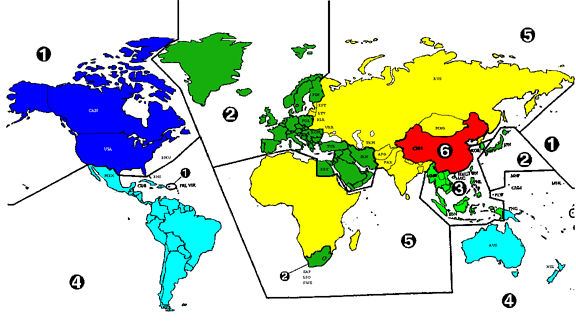 Mochten de PSP-spellen dezelfde regiocode als DVD's krijgen, dan zal de wereld als volgt ingedeeld worden: