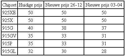 Ook heeft Intel plannen om de prijzen van de 915 chipsets verder te verlagen op 3 april 2005. De prijzen zullen eind december ook verlaagd worden. Bij deze eerste verlaging wordt het verschil in prijs tussen Intels 915G en 865G teruggebracht van $4 naar $2. De prijzen van de 865-series en 845-series blijven onveranderd op $36, $26, $24 en $21 voor respectievelijk de 865G, 865GV, 865PE en 848P.