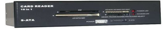 Zijn 6-in-1 kaartlezer frontjes tegenwoordig bij elke degelijke computerzaak verkrijgbaar, Techsolo laat een heuse 16-in-1 card reader op de markt verschijnen. Belangrijkste verschil met andere readers is de front aansluiting voor een S-ATA schijf. Verder is het apparaat geschikt voor vrijwel alle soorten geheugenkaarten.