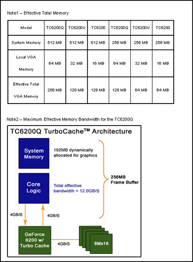 TurboCache is een nieuwe techniek welke het mogelijk maakt 3D beelden te laten renderen in het systeemgeheugen in plaats van het videokaart geheugen, de verhoogde bandbreedte van de PCI-Express bus zorgt er voor dat er weinig vertraging in dit proces optreedt. Doordat er gebruik wordt gemaakt van het systeem geheugen kan dit de kosten voor het procduceren van de kaart laag houden, aangezien er een stuk minder fysiek geheugen op de kaart nodig is.