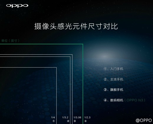 De N3 zal worden uitgerust met een 16-megapixel sensor die maar liefst 1/2,3-inch groot is. Ten opzichte van de meeste smartphones heeft deze nieuwe Oppo een fors grotere sensor. Andere smartphones met een grote sensor zijn onder andere de Sony Xperia Z3 en de Nokia 808 PureView. Eerstgenoemde toestel heeft eveneens een 1/2,3-inch sensor en de Nokia 808 heeft een 1/1,2-inch sensor. Ze behoren daarmee tot de top wat betreft de grootte van de sensor. Verder heeft Oppo bekend gemaakt dat de camera automatisch gedraaid kan worden.