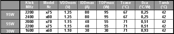 De informatie die uitgelekt is, is gericht op de fabrikanten van voedingen en koelers die er voor moeten zorgen dat die producten geschikt zijn voor de nieuwe processors van AMD. Omdat de onderstaande gegevens nog in een vrij vroeg stadium zijn vrijgegeven meldt AMD aan haar partners dat de snelheden nog aangepast kunnen worden, het verbruik en de temperatuurspecificaties zouden echter bij introductie niet hoger zijn dan de hieronder vermelde informatie.