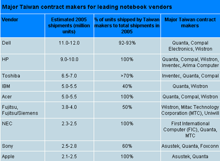 Teneinde hun bruto opbrengsten in 2005 te kunnen verhogen, wordt verwacht dat de Taiwanese notebook fabrikanten hun agressieve prijs strategie zullen staken. Daarnaast hopen de fabrikanten hun wereldwijde marktaandeel van 80% in 2004 uit te kunnen breiden naar 85 tot 90%. In de praktijk betekent dit dat men verwacht zo’n 57 miljoen stuks te gaan verkopen.