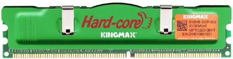 Kingmax claimt met haar Hard-core DDR500 modules het ultieme overclock geheugen te leveren. Volgens eigen tests bieden de geheugenmodules, wanneer overclockt op K8 nForce4 moederborden, betere prestaties en een hogere betrouwbaarheid.