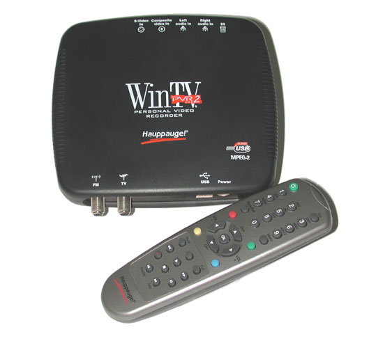 De Hauppauge WinTV-PVR-USB2 kan tot 125 TV-kanalen vastleggen, ondersteunt hardware MPEG1/MPEG2-encoding, kan real time inhoud op een DVD of CD branden en heeft een geïntegreerde FM-tuner. Ulead DVD MovieFactory 2 en een afstandbediening worden meegeleverd.