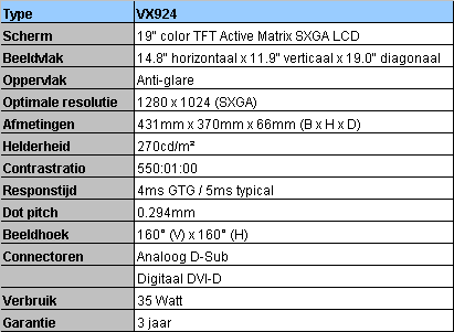 De nieuwe ViewSonic VX924 TFT LCD monitor is de eerste 19” monitor met een responstijd van 4ms (grey-to-grey=GTG). De reactietijd voor de periode die het kost voor een pixel om van zwart naar wit en weer terug naar zwart te veranderen ligt bij de VX924 op 5ms. Volgens ViewSonic zorgt haar Advanced Overdrive Technology(door middel van een hogere voltage stepping wordt een hogere gevoeligheid van de pixels bereikt) en Advanced Impulse Technology(controleert de benodigde hoeveelheid ‘overdrive’) voor de verbeterde responstijden.