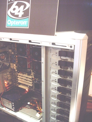 Op de stand van het bedrijf werd een systeem getoond op basis van een Cooler Master CM-Stacker behuizing, gevuld met een quad Opteron moederbord gevuld met dual core Opteron processors. Een machtig schouwspel.