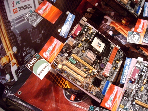 Op de stand van het bedrijf op het System Builder Summit vonden we ondermeer een moederbord voorzien van een Socket 754 en de populaire ATI Xpress 200 chipset met geïntegreerde grafische chip.