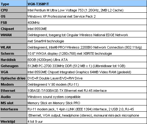 Hieronder de specificaties van het hierboven afgebeelde VaioT350P/T notebook.