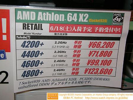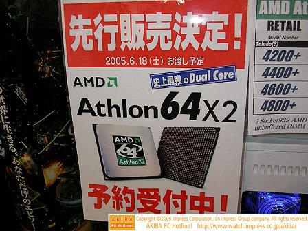 Waar op de Nederlandse markt de AMD 64 X2 slechts op pre-order basis te bestellen is, laten hardware winkels in Japan reeds werkende systemen op basis van deze processoren zien. De verkoop start op 18 juni.