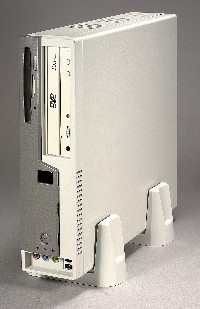 Naast het nieuwe moederbord introduceert het bedrijf ook een nieuwe compacte barebone onder het modelnummer: MS-6215. Opvallend is dat het nieuwe product zowel in standaard grijs als ook in champagne-kleur leverbaar is. De 'Slim-PC' zoals MSI het noemt is standaard voorzien van ethernet en is dus duidelijk bedoelt voor een zakelijk leven. Het systeem biedt ruimte aan een floppy en een cd-romspeler. Aan de voorzijde zijn zowel de infrarood-adapter, microfoon als de USB-poorten te vinden. Aan de achterzijde is plaats voor ondermeer FireWire (IEEE1394).