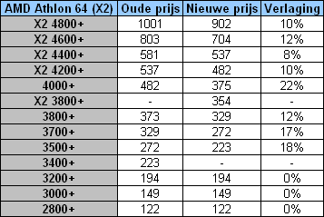 Met de introductie van de Athlon 64 X2 3800+ zijn ook de prijzen van diverse AMD processors verlaagt. Alle genoemde prijzen zijn in US dollars per stuk bij afname van 1000 stuks.