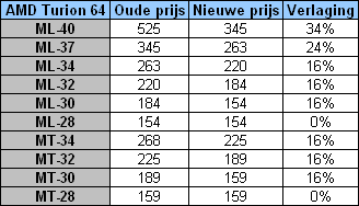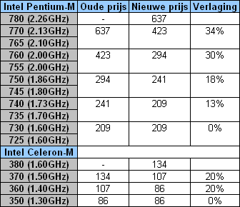 Op het mobiele vlak krijg je bij de Turion 64 voor hetzelfde geld een modelnummer hoger. Ditzelfde geldt voor Intel's Pentium-M reeks, die na de introductie van de 780 ook in prijs verlaagd is. [Eric]
