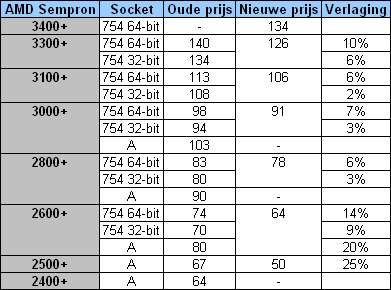 Na het bekend maken van het einde van de K7 tijdperk, is bij de Sempron voor Socket A alleen nog de 2500+ en 2600+ leverbaar. De 2400+, 2800+ en 3000+ zijn van het toneel verdwenen. Wat nog meer opvalt, is dat de prijzen van alle sockets gelijk getrokken zijn en de 3400+ (S754) duikt voor het eerst op.