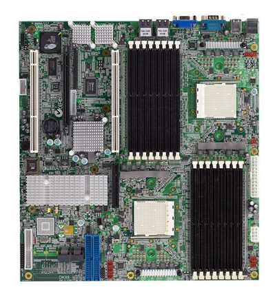 Het moederbord beschikt over een PCI-Express x16 slot, een x8 slot, twee PCI-X sloten, een Broadcom Gigabit LAN aansluiting en Serial ATA II poorten met ondersteuning voor RAID 0, 1 en 0+1. [YK]