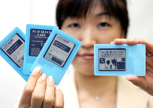 Een werknemer van Fuji Xerox toonde een prototype van elektronisch papier genaamd “E-Paper Visual Index Card”. Het elektronisch papier is zeer dun en vermindert het verbruik aan energie, omdat het houden van een bepaald beeld geen stroom vereist. Verwacht wordt dat het product in 2006 uit zal komen.