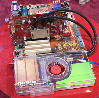 Op de CES in Las Vegas heeft koelingsspecialist Thermaltake vandaag een nieuw concept VGA koeling geïntroduceerd. De Tide Water All-in-One Liquid Cooling Module is een een compacte waterkoeling voor de VGA kaart, klein genoeg om in twee PCI slots te worden geinstalleerd.