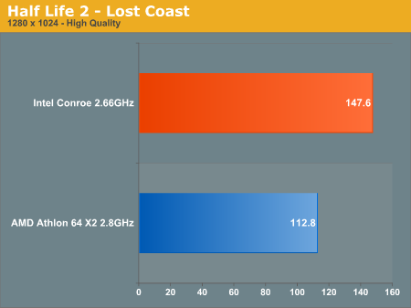 De twee systemen zijn vergeleken in Bechmarks als Quake 4, F.E.A.R., Unreal Tournament 2004 en Half-life, alsmede een aantal benchmarks in Divx 6.1 en Windows Media encoder. Het Intel systeem maakt gebruik van een 975x moederbord met DDR2–667, het AMD systeem van een RD480 moederbord met DDR 400.