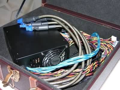Op onderstaande foto valt te zien dat de voedingen vier PEG-connectors hebben, speciaal voor gebruik met Quad SLI. Wat ook speciaal genoemd mag worden is de luxe koffer waarin de voedingen geleverd worden.