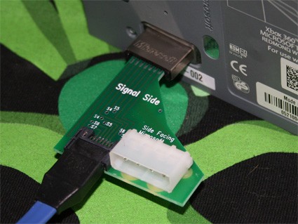 De adapter is in wezen een eenzijdige PCB en herbergt een S-ATA poort, een 4-pin molex poort voor de stroomvoorziening en een interface waardoor de adapter op de Xbox360 harddisk kan worden aangesloten.