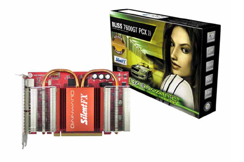 Gainward komt binnenkort met een passief gekoelde GeForce 7600 GT videokaart. De Bliss 7600 GT PCX 256 MB Dual DVI Golden sample Silent FX kaart is uitgerust met twee heat pipes en is geklokt op 575 MHz. Het geheugen doet zijn werk op 1400 MHz.